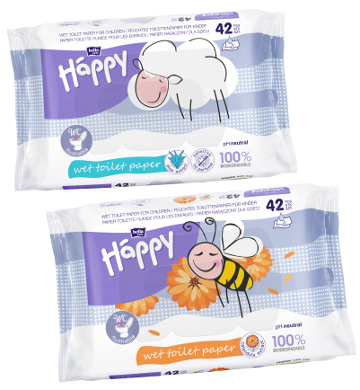 Bella Baby Happy vochtig toiletpapier met hydraterend goudsbloemextract reinigt perfect de intieme zones van kinderen zonder irritatie te veroorzaken. Het toiletpapier, verpakt in een handige verpakking met klepje, kan in het toilet worden doorgespoeld. 100% biologisch afbreekbaar. Handig en gemakkelijk in gebruik – om uw kind aan te moedigen zelfstandig het toilet te gebruiken.