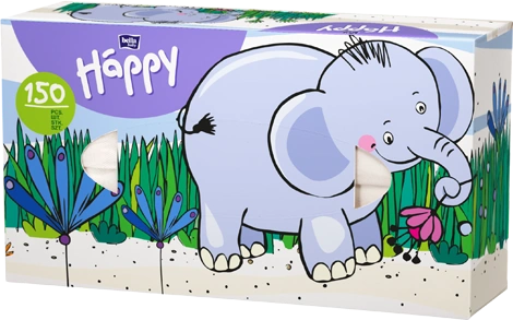 De dubbellaagse Bella Baby Happy-tissues zijn gemaakt van zeer zacht en aangenaam aanvoelend tissuepapier, dat het babyneusje niet irriteert. De handige verpakking maakt het gemakkelijk om de tissues te gebruiken, en de kleurrijke dierenprints trekken de aandacht van de baby.